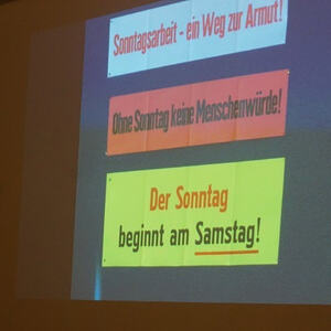 Wolfgang Schönleitner beginnt seinen Vortrag über 70 Jahre KMB mit einem Zitat von Dietrich Bonhoeffer: