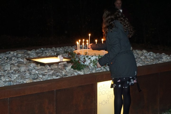 Die Namen der Euthanasieopfer werden am Friedhof von einem Schüler verlesen, für jedes Opfer gibt es eine brennende Erinnerungskerze.