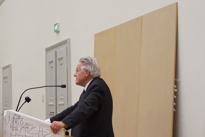 Er zitiert aus der Dankesrede von Martin Pollack, die dieser anlässlich der Verleihung des Johann-Heinrich-Merck-Preises in Darmstadt gehalten hat.