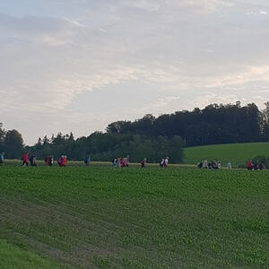 Ca. 100 Frühaufsteher/Innen brachen um 3:30 Uhr auf, um die Füße im Rhythmus des Rosenkranzgebetes zum Sonnenaufgang hinzubewegen.