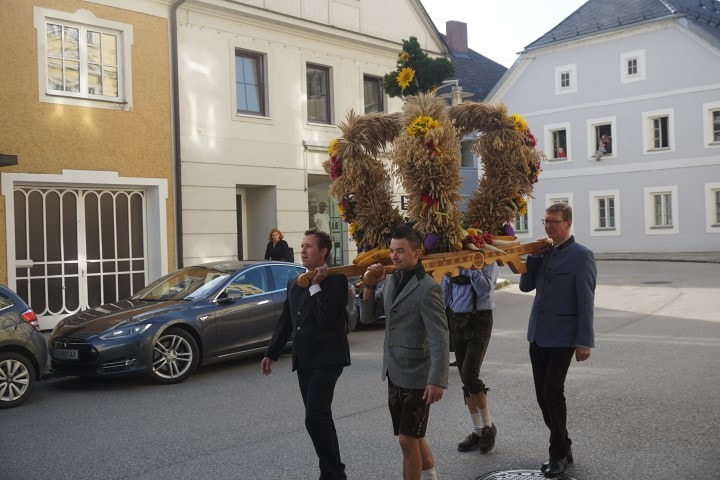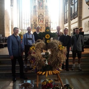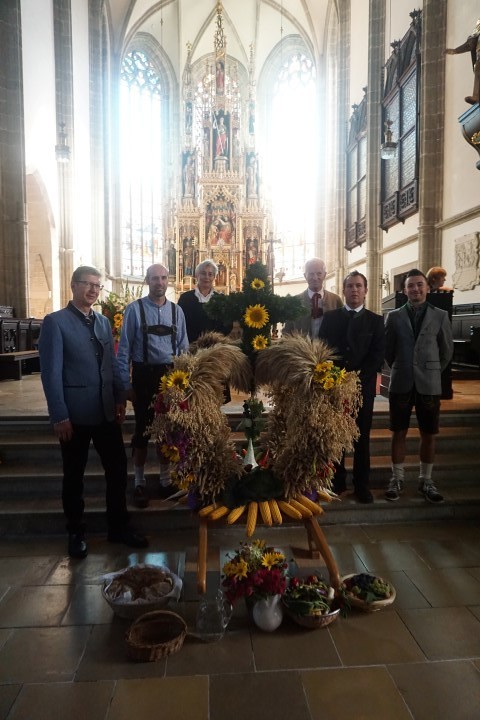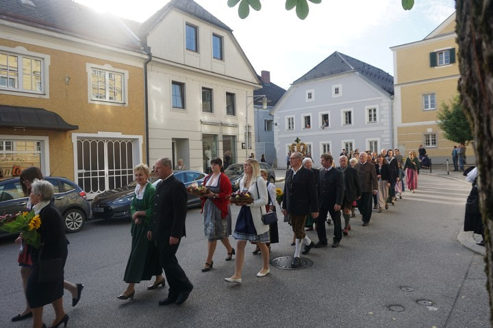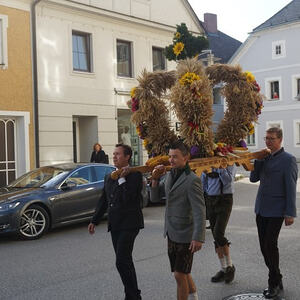 Maria Traunmüller bedankt sich bei den Ortschaften Ober- und Unterschaden, Altau, Taubenbrunn, Wörth und Goldenberg für das Ausrichten des Festes, besonders für das Gestalten des Schmuckes und dem Herstellen der wunderschönen Erntekrone.