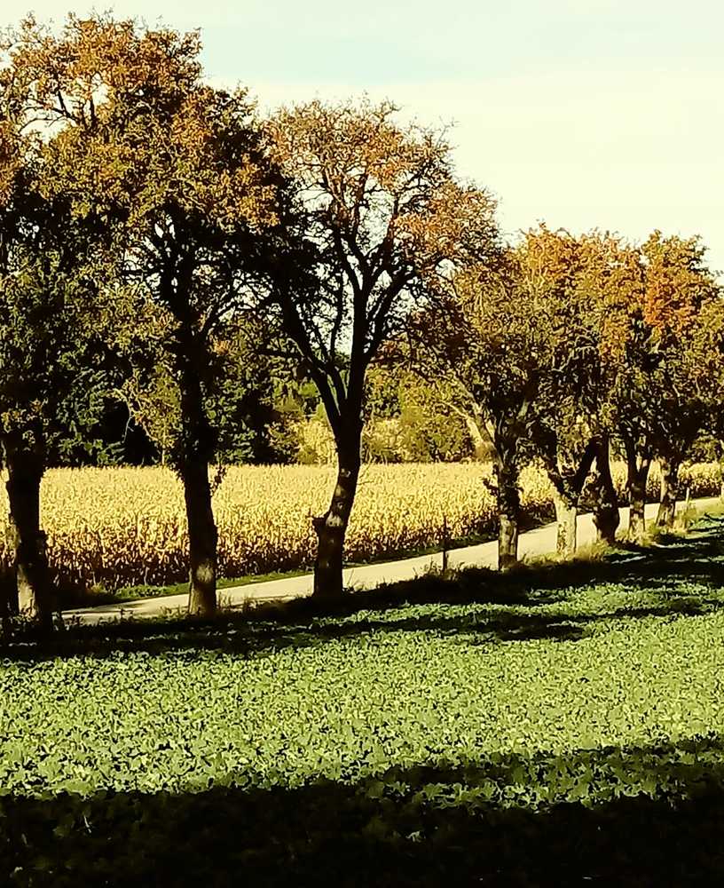 Wer noch nicht wusste, woher der Ausdruck „Goldener Herbst“ kommt und mit dabei war, weiß es jetzt auf alle Fälle. Mildes Licht – leicht verfärbtes Laub – abgedroschene Felder - all das wirkt zusammen golden.