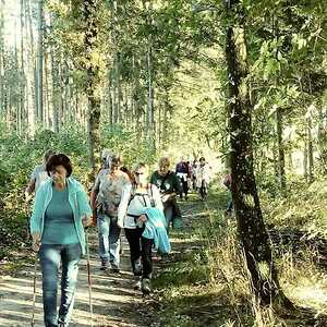 Nach der Anreise mit PKWs auf die Anhöhe der Ortschaft Forst marschierten wir auf Feld- und Waldwegen hoch über den Dächern von Alkoven.