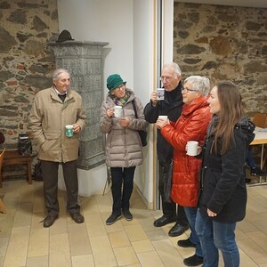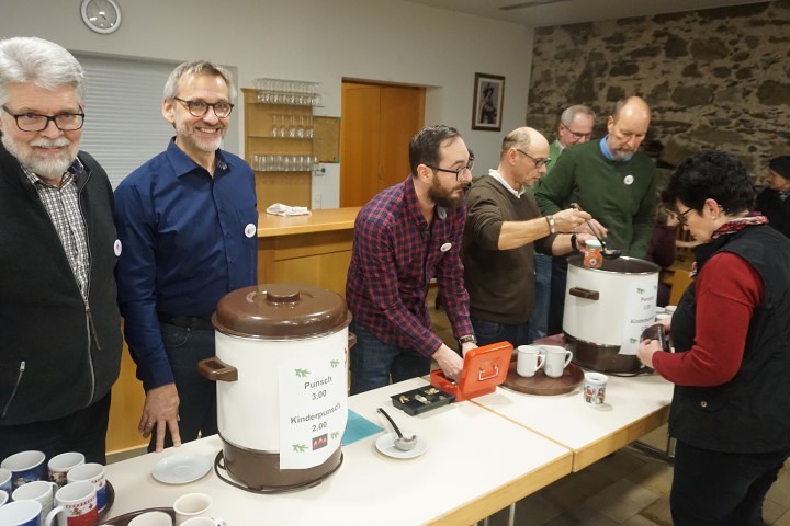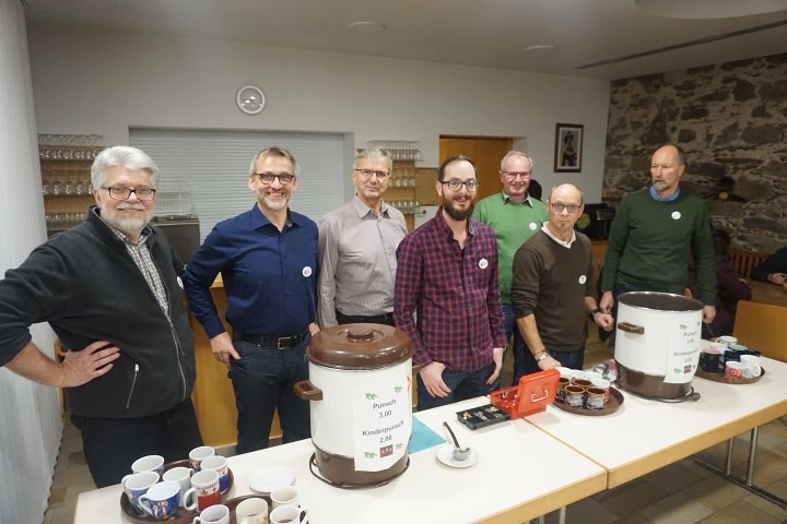 Die fleißigen Männer der katholischen Männerbewegung mit ihrem Leiter Franz Plöchl laden im Pfarrzentrum zu Lebkuchen und Punsch.