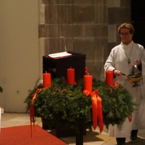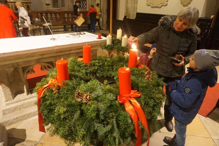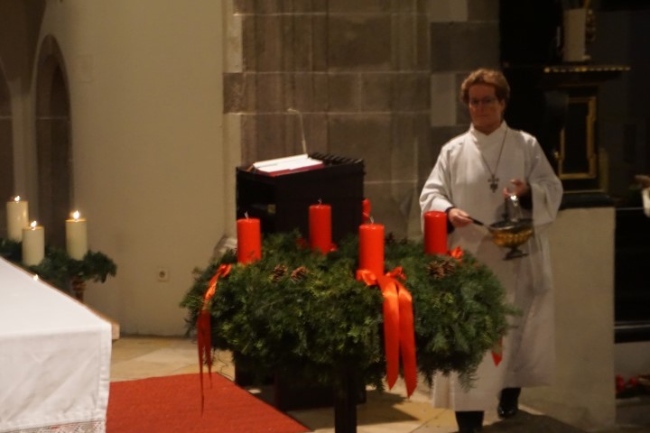 Mit dem Segnen der Adventkränze, dem gemeinsamen Vater unser und dem Schlusssegen, verbunden mit dem Wunsch der Gottesdienstleiterin für eine lichtvolle Adventszeit, endet die stimmungsvolle Feier in der Kirche.