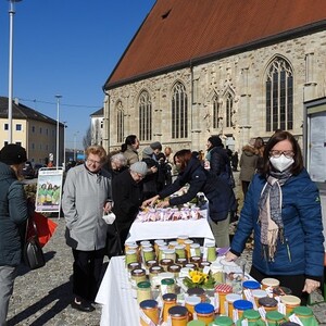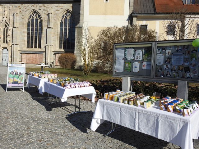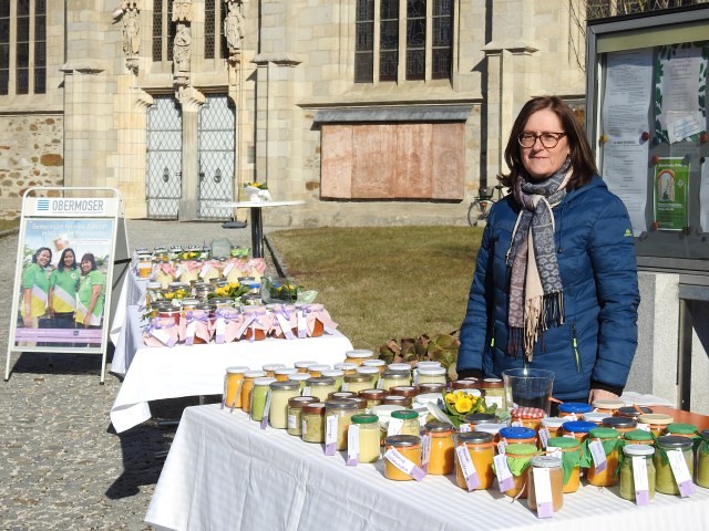 Etwa 200 Liter verschiedenster Suppen, abgefüllt in ca. 560 Gläser wurden von ungefähr 30 SuppenköchInnen letzten Sonntag anlässlich des Familienfastensonntags und zugleich des Suppensonntags der kfb gegen freiwillige Spenden am Kirchenplatz und am Stadtplatz angeboten.