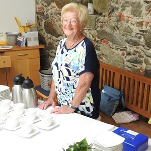 Sonja Wiesinger begrüßt Pfarrer em. Johann Stöllnberger als Ehrengast und bedankt sich für die vielen Jahre, die er sich vom Herrn rufen ließ, für die Jahre, in denen er für Eferding seelsorgliche Dienste geleistet hat.