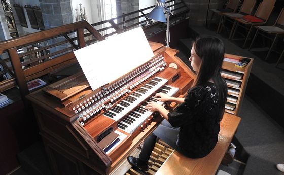 "Im Kopf mitsingen" Julia Schober – die junge Organistin mit Talent, Spieleifer und Ausdauer Seit 7 Jahren spielt Julia Schober Klavier, seit 3 Jahren Orgel. zu den Bildern: "Im Kopf mitsingen"