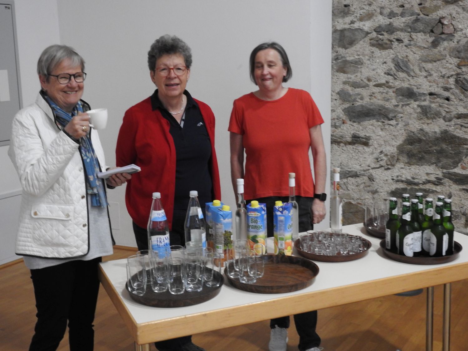 Im Pfarrzentrum St. Hippolyt wurden die 40 Musiker*innen von Gerda Pöschl und Michaela Brandl bewirtet. Kaffee, Briochegebäck, ein Schluck Bier und ein kleines Schnapserl – damit lässt sich die Weckrufroute bestens beginnen und fortsetzen.