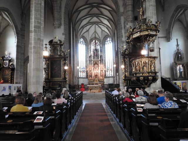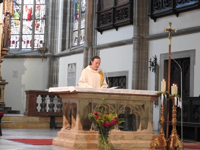 In der ökumenischen Andacht zu Beginn verweist Mag.a Maria Traunmülller (katholische Pfarrgemeinde) auf die Tradition des Herz-Jesu-Festes als Anlass für das Motto „Offene Kirchen, weites Herz“.