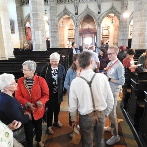 Mit Menschen ins Gespräch kommen, mit einem Glas Wein die Atmosphäre der Kirche spüren, die Bilder betrachten, die Musik genießen, … das war die Intention des Abends.