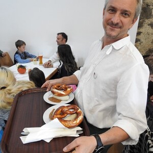 Am Frühschoppen nach dem Gottesdienst, gemeinsam ausgerichtet von der Katholischen Frauenbewegung und der Katholischen Männerbewegung, gab es Weißwurst, Brezen, Kürbissuppe, Bier, Säfte, Kuchen und Kaffee. Ein Angebot, reichlich und als Ersatz für das Mittagessen am Sonntag gedacht, das auch den guten Zweck erfüllte: