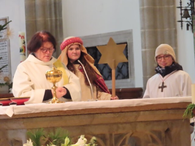 Sternsingen, das sei viel mehr als von Haus zu Haus gehen, so Christa in ihren Predigtgedanken: ein wenig Aufregung vor jeder Haustüre, ein "heiliger" Moment, aufmerksamen, berührten Menschen begegnen, Singen für ganze Familien, vor der Weihnachtskrippe und manchmal auch an einem Krankenbett.