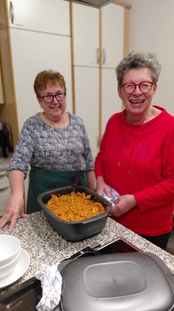 Im Anschluss an die Feier setzten sich die TeilnehmerInnen noch gemütlich zusammen und dabei wurden nigerianische Gerichte verkostet.