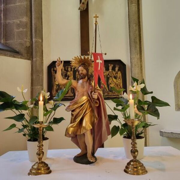 "Der Ostermorgen ist die Stunde der Frauen – in allen vier Evangelien. Sie sind aus der Gefolgschaft Jesu die Verlässlichen. Dem Anblick der Kreuzigung sind sie nicht ausgewichen, dem Toten folgen sie bis zum Grab - als sie den Toten salben wollen, begegnet ihnen der Lebende. Besonders dramatisch schildert uns das Johannesevangelium die Geschichte, die Erfahrungen einer großen Liebenden: Maria von Magdala – sie sucht verzweifelt den, den ihre Seele liebt. Ihre Hoffnung war begraben worden. Geblieben war ihr nur noch die Trauer. Die lässt sie nicht ruhen. Wenigstens den Leichnam möchte sie haben: Sag mir, wo hast du ihn hingelegt? Die liebende Erinnerung möchte Maria am Grab pflegen – das, was wir alle tun, wenn wir an unseren Gräbern stehen, wenn wir weinen und die Tränen unseren Blick verschleiern, wenn wir Zeichen der Liebe setzen in Bildern, Blumen und anderen Erinnerungszeichen. ........."