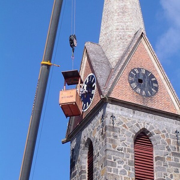Mit der gelungenen Schindeldeckung des Kirchturmes, der Renovierung des Turmkreuzes und der Erneuerung der Schließeisen hat unser Kirchturm an Schönheit gewonnen.