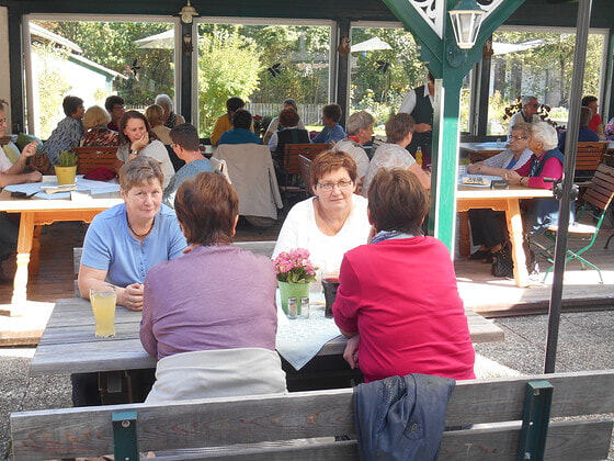 Das Kloster Gut Aich beeindruckte uns sowohl innen als auch außen mit seinen schönen Kräutergärten. Nach der Messe und einer interessanten Führung kehrten wir zum Mittagessen beim Wirt am Gries in St. Gilgen ein. Anschließend genossen wir noch das herrliche Wetter im Freien, bevor wir die Heimreise antraten und bei der Kirche in Osternach noch eine Andacht hielten. Den Abschluss bildete die Einkehr im Osternacher Hof in Ort i.I.