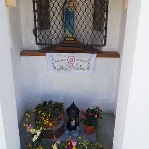 Weil das Wetter leider nicht mitspielte, konnten wir nicht bei der schönen Kapelle feiern, sondern verlegten die Maiandacht in die Garage unserer Gastgeber.