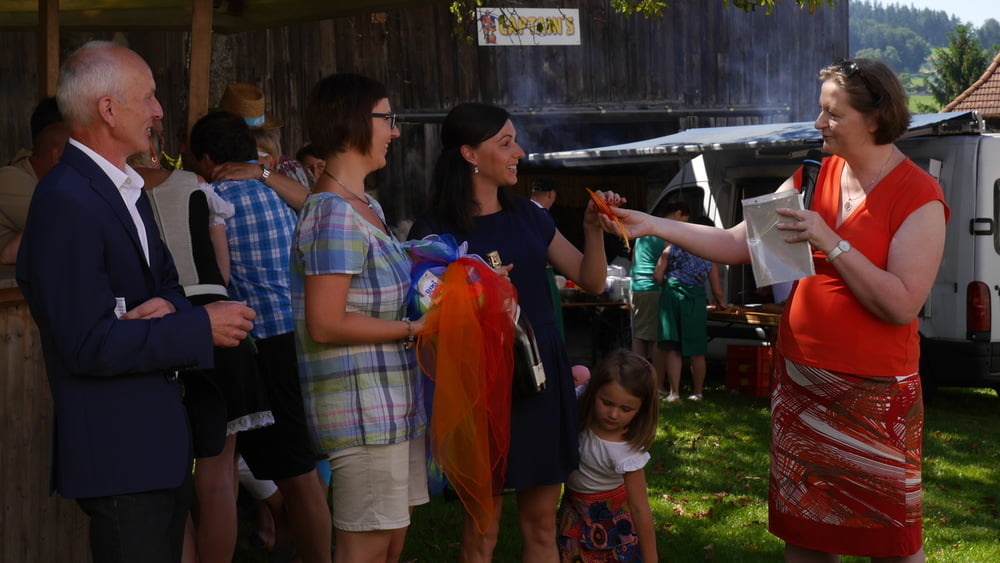Wie jedes Jahr gab es beim Schätzspiel der Jungschar viele schöne Preise zu gewinnen. Zu erraten war die Fläche des Innenhofes des Moarhofgebäudes in dm².
