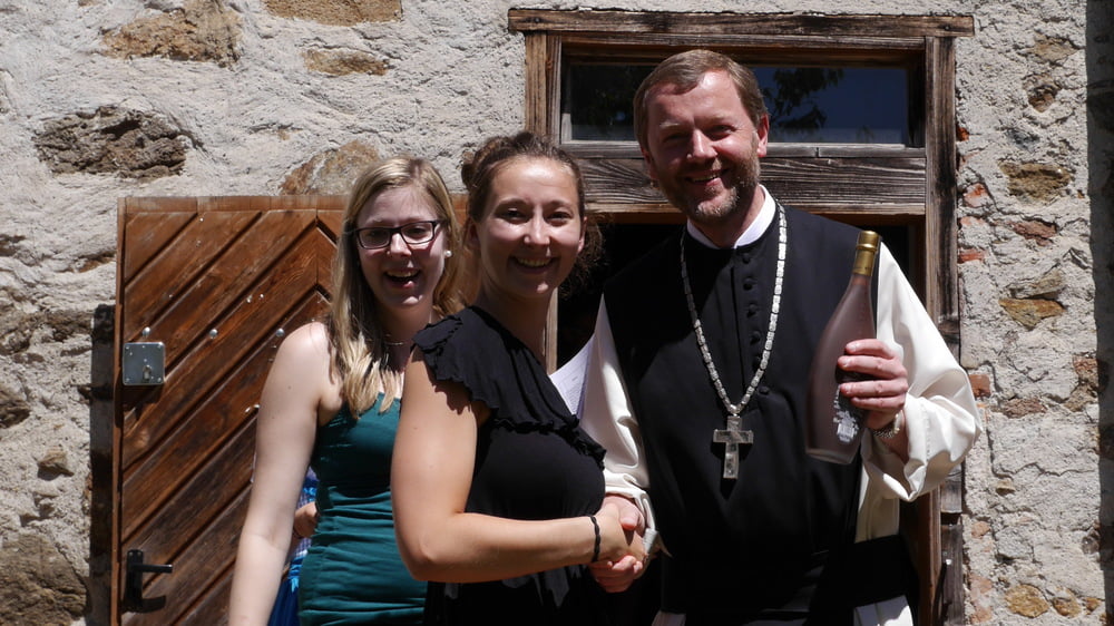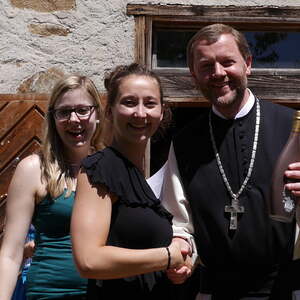 Nach dem feierlichen Gottesdienst, den P. Paulus zelebrierte, füllte sich der Innenhof des Stiftsgebäudes rasch mit Gästen, die sich die zahlreichen Köstlichkeiten, wie Henderl, Bratwürstl und Krapfen schmecken ließen.