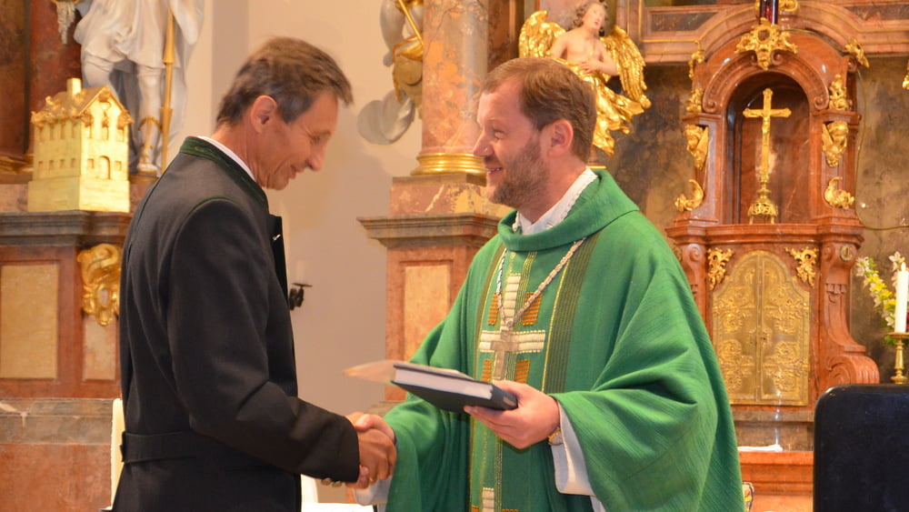 Abt Reinhold überreichte Ferdinand Aichinger das bischöfliche Schreiben und ein Buch mit den Riten und Gebeten für Begräbnisse und sprach ein Segensgebet über den neuen Begräbnisleiter.