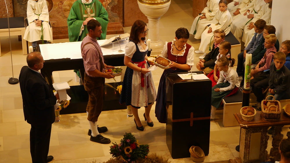 Zur Opferung wurden die verschiedenen Erntegaben zum Altar gebracht.