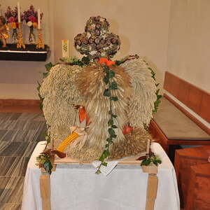 Am Vorplatz des neuen Kindergartens war die Begrüßung und die Segnung der Erntekrone durch Pater Rainer. Der Einzug in die Marienkirche Geng wurde von der Goldhaubengruppe und der Musikkapelle umrahmt. Der Gottesdienst in der prall gefüllten Kirche wurde vom Kirchenchor Geng besonders feierlich gestaltet. Pater Rainer würdigte die Treue der Jubelpaare und segnete ihren Bund der Ehe aufs Neue.