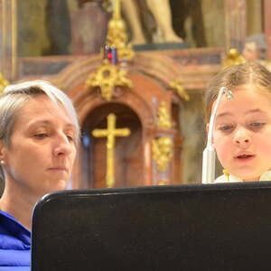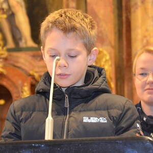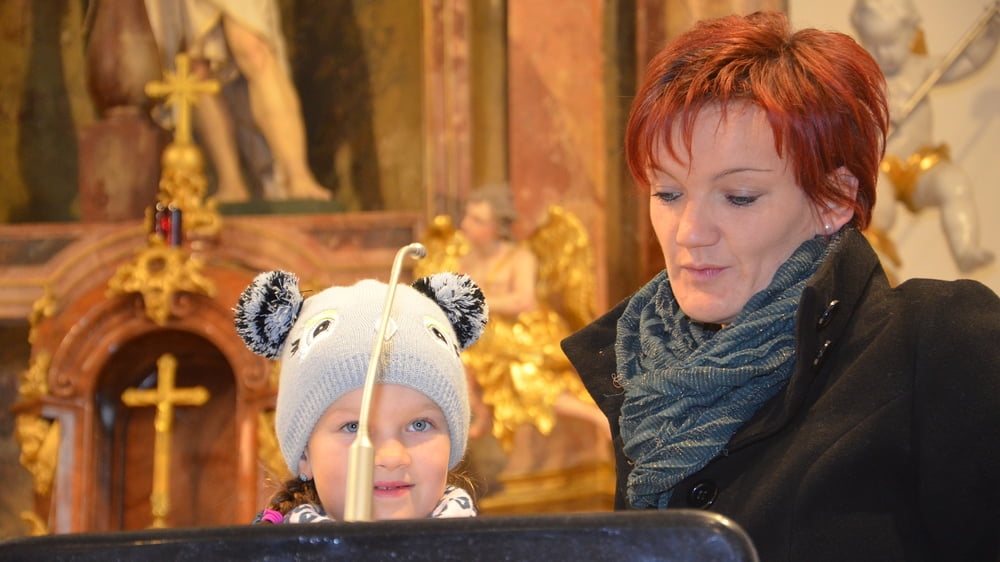 Bevor Wortgottesdienstleiterin Helga Pargfrieder die vielen Adventkränze, die mit ihrem Grün und ihren farbigen Kerzen den Altarraum zierten, segnete, beantwortete Silvia Erlinger die Fragen ihrer Lichter Lisa: