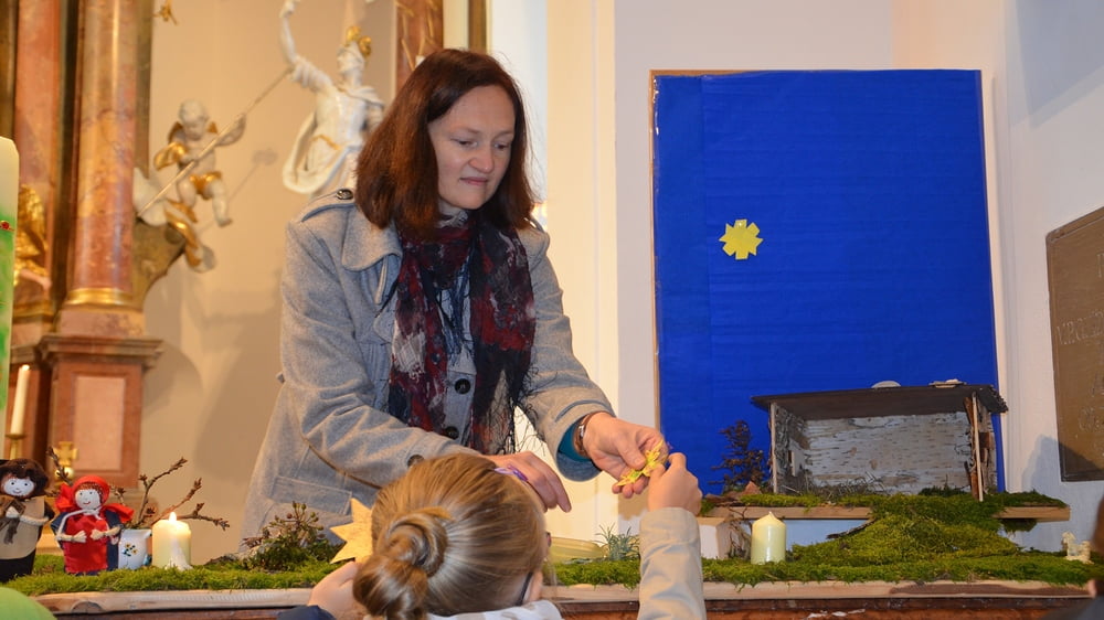 Beim Ausgang werden an alle Kinder Barbarazweige ausgeteilt. Vielleicht blühen sie bis Weihnachten auf.