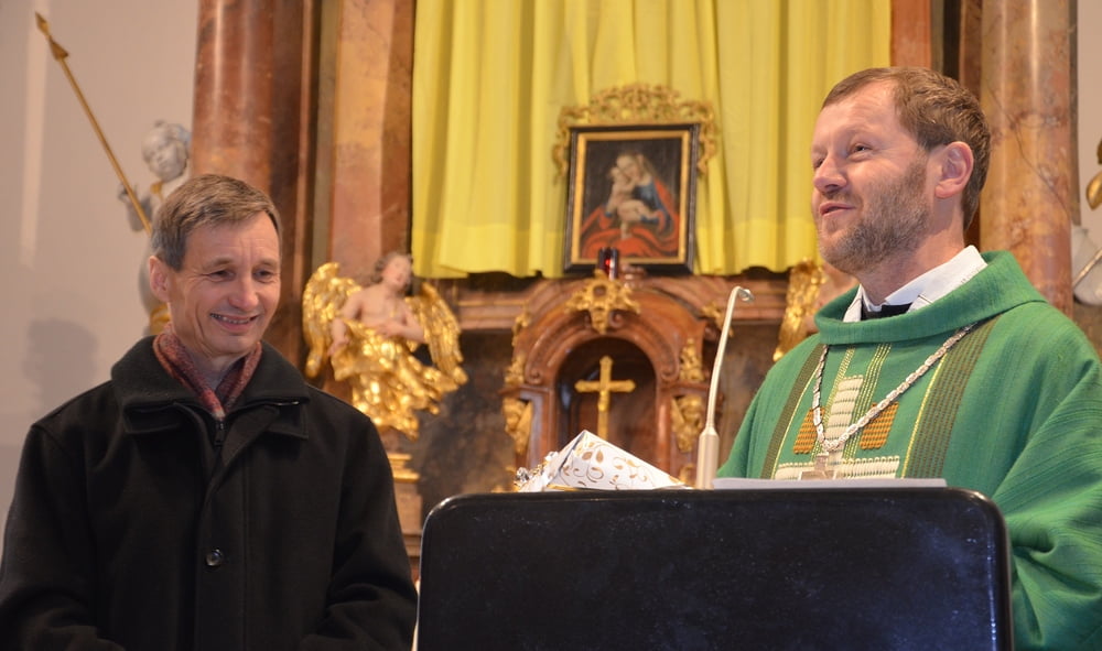 Besonders bedankte sich Abt Reinhold bei Ferdinand Aichinger für die vielen Samstag Vormittage, in denen Ministrantenstunden abgehalten hat und für die unzähligen Stunden, die er mit der Einteilung, der Planung von Ausflügen und diversen Aktivitäten verbracht hat. Als Anerkennung für seine Arbeit erhielt Ferdl eine neue Übersetzung der Hl. Schrift von unserem Abt.