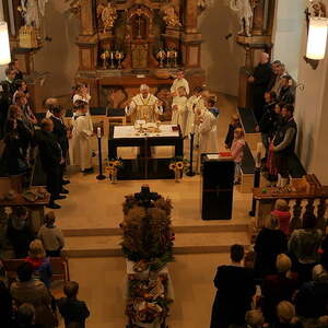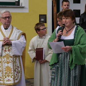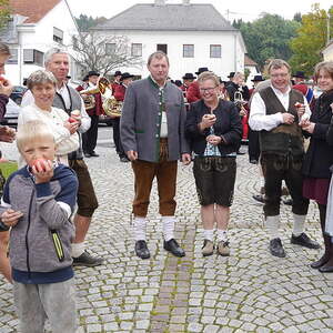 Nach einer stimmungsvollen Besinnung brachten die Schüler ihre Gaben und alle Kinder, die Früchte mitgebracht hatten, befüllten den Erntewagen. Nach der Segnung der Früchte und der Erntekrone, die von der Landjugend gebunden und geschmückt wurde, zog die Pfarrgemeinde mit den Klängen des Musikvereines Eidenberg in die Kirche ein, wo die Messe gefeiert wurde.
