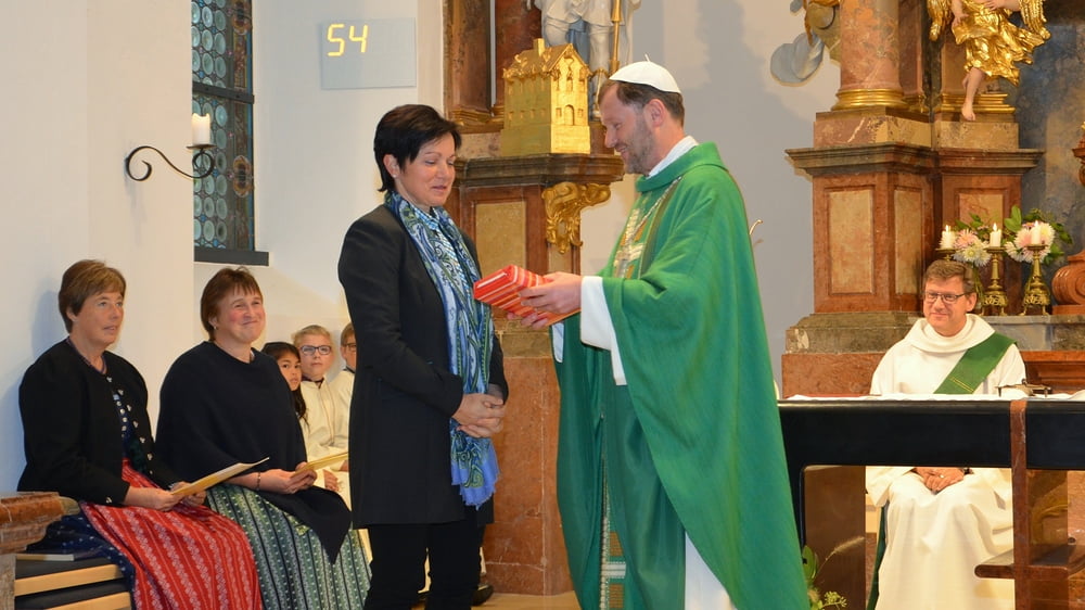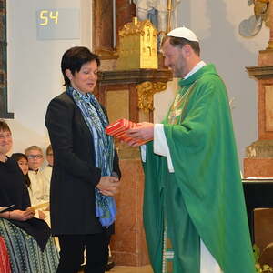 Als neues Teammitglied stellte Abt Reinhold Thomas Schwierz vor. Er wurde mit dem Aufgabenbereich Verkündigung beauftragt. Elisabth Mayr, Maria Koglgruber (beide Caritas), Franz Grünbacher (Koinonia - Gemeinschaft) und Ferdinand Aichinger (Liturgie und Leitung des Seelsorgeteams) werden ihre bisherige Tätigkeit fortführen und erhielten ebenfalls die bischöflichen Sendungsdekrete vom Abt überreicht. Kamilla Märzinger scheidet aus dem Team aus. Abt Reinhold bedankte sich und überreichte ihr ein Exemplar der neuen Bibelübersetzung.