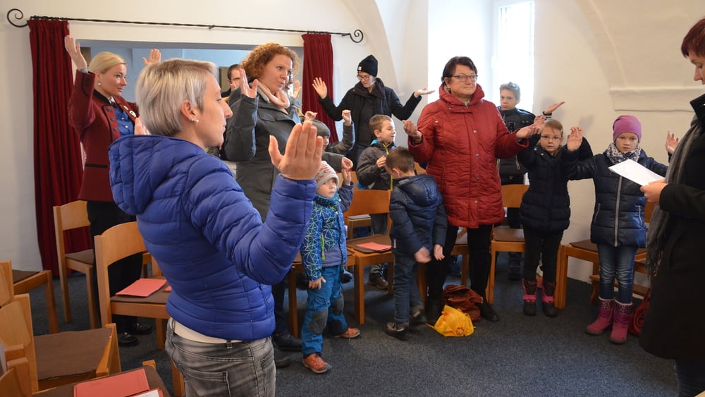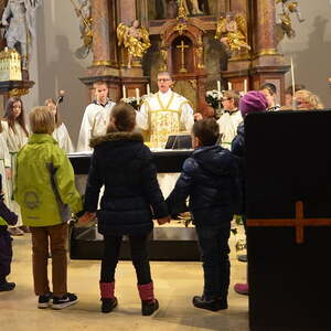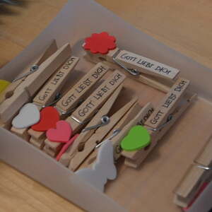 Zur Gabenbereitung zogen die Kinder in die Kirche ein, wo sie von Dr. Volgger zum Vater unser zum Altar eingeladen wurden. Als Erinnerung an den Gottesdienst erhielten alle Kinder eine Klammer mit der Aufschrift „Gott liebt dich“.