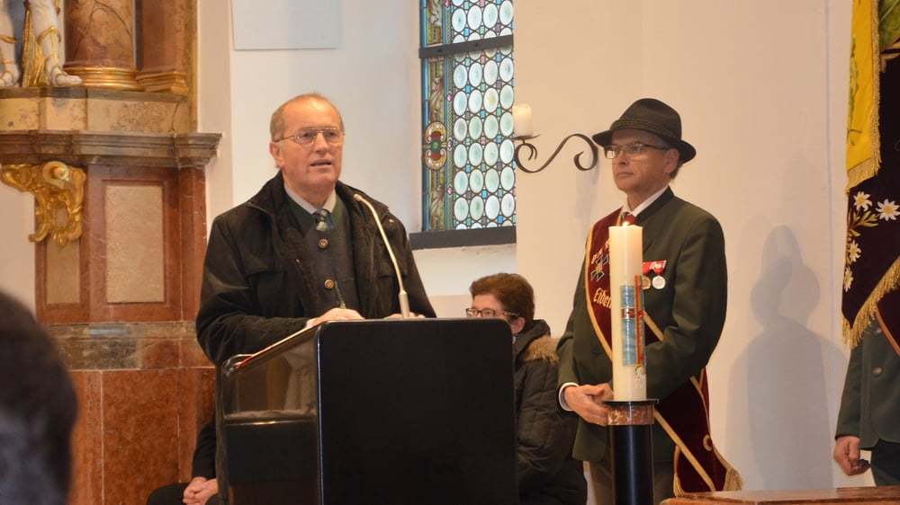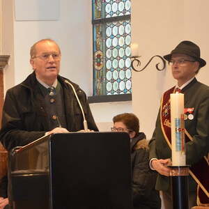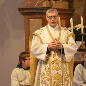 Der Festgottesdienst hätte nicht feierlicher sein können. P. Ewald leitete die Predigt mit der Antwort eines Ministranten auf die Frage ein, warum er in die Kirche gehe: "Er wolle wissen, was ihm Christus heute sagen werde." Zur Lesung über die Weisheit und dem Evangelium von den fünf törichten und den fünf klugen Jungfrauen, die neben den Lampen auch Öl mitgenommen hatten, als sie den Bräutigam erwarteten, sagte P. Ewald, dass das Öl die Weisheit sei, mit der wir Christus erwarten um zu hören, was er uns sagen wolle. Das Öl sei es, das uns den Auftrag zu einem guten Miteinander erfüllen helfe und damit ein Stück Himmel bereits auf Erden verwirklichen lasse. Christus lädt uns nicht erst im Tod dazu ein, unser Herz mit ihm zu verbinden, sondern bereits zu Lebzeiten, und das regelmäßig immer wieder.