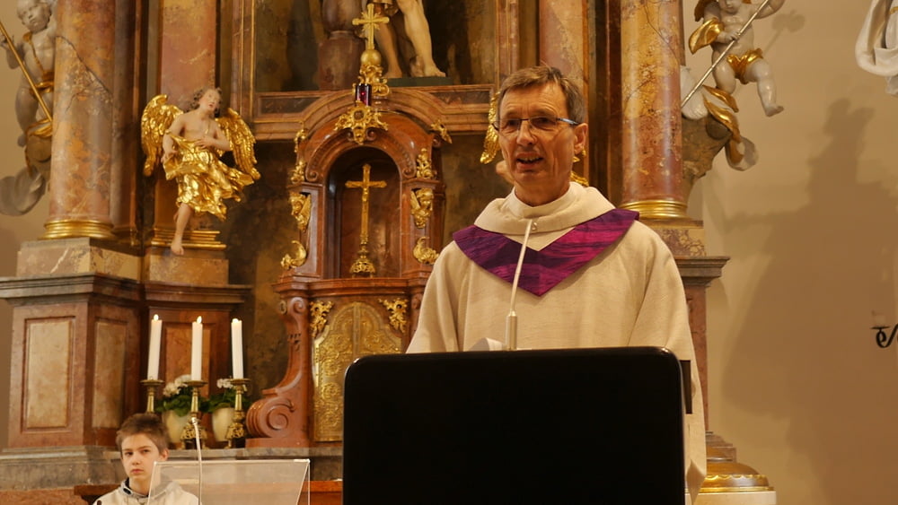 Der Vortrag (© Stefan Schlager) bezog sich auf das Johannesevangelium (Joh 10,10), wo wir darauf aufmerksam gemacht werden, dass im Leben viele Fallen lauern, aber der gute Hirte über uns wache. Mit der grenzenlosen materiellen Fülle seinen wir heutzutage überfordert. Das Materielle binde uns sosehr, dass es in Vielen eine innere Leere hervorrufe. Die Fülle des Lebens erreiche man nicht, wenn man schon alles habe. Nur durch ein Loslassen des Materiellen könne man sich den wesentlichen Aspekten des irdischen Lebens öffnen in rückbinden an Gott, der immer da sei, aber in der Oberflächlichkeit des Lebens nicht wahrgenommen werde. Gott sei, was uns fehle, wenn wir schon alles haben und umgekehrt.