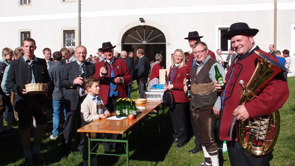 Bei der anschließenden Agape im Hof des Stiftsgebäudes wurden die Erntegaben verteilt. Das gemütliche Zusammensein wurde vom Musikverein musikalisch umrahmt.