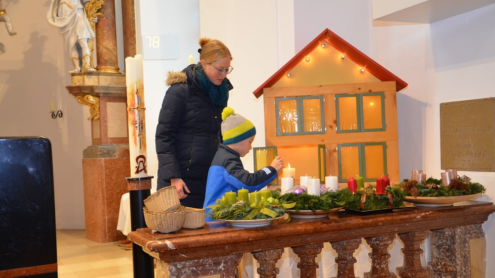 Mit einem Familiengottesdienst begannen wir auch heuer die Adventszeit. In diesen besonderen Wochen begleitet uns ein Adventhaus auf unserem Weg Richtung Weihnachten. Hinter dem ersten Fenster stand eine Kerze. Sie erinnert uns daran, dass mit der Geburt von Jesus ein neues Licht in diese Welt kam. Auch wir können wie eine Kerze Licht und Wärme ins Leben unserer Mitmenschen bringen, wenn wir füreinander da sind.