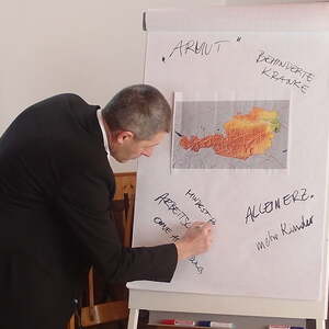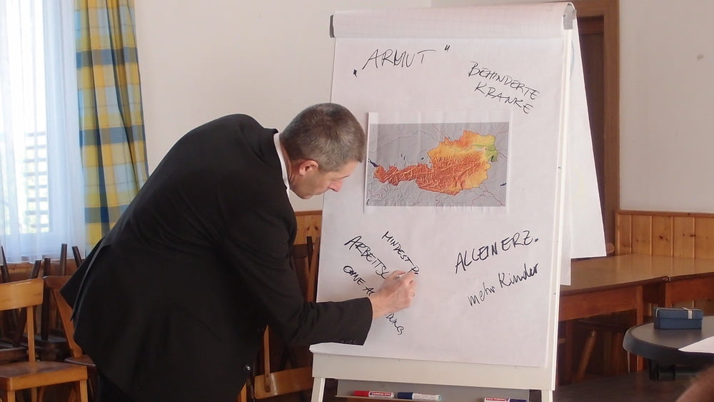 Anschließend hörten wir einen interessanten Vortrag zum Thema „Dazugehören“ (das deutsche Wort für Integration.) Es ging darum, wie unter heutigen Bedingungen Beteiligung bzw. „ Dazugehören“ im sozialen, politischen oder im kirchlichen Umfeld möglich ist. Anhand von Beispielen vermittelte uns Hr. Mag. Hans Georg Pointner wie Identität und Integration von Obdachlosen, Flüchtlingen, behinderten, kranken und benachteiligten Menschen gelingen kann. Welche Ressourcen und Ausstattungen im sozialen Umfeld nötig sind, um in der Gesellschaft zu wirken. Abschließend wurde der Blick mit einer Bibelstelle auf Jesus gelenkt, in der es heißt: „Was ihr den geringsten meiner Brüder, Schwestern getan oder nicht getan habt, das habt ihr mir getan oder nicht getan.“