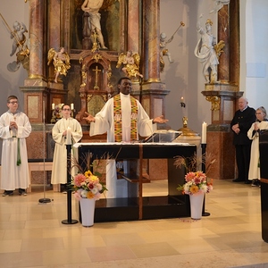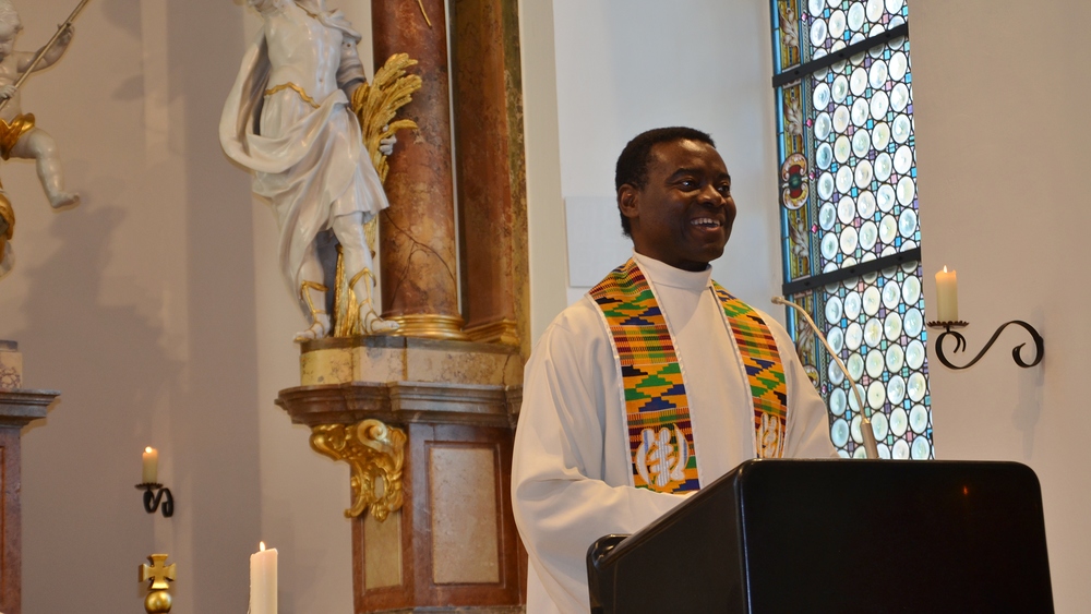 Bei der Messe wurden die Gemeinschaft und die Kraft, die von der Kirche ausgeht, fühlbar. Pfarrer Emeka versteht es, die Kirchenbesucher in den Gottesdienst mit einzubeziehen und eine Zusammenhörigkeit zu vermitteln. Am Anfang stand ein dreifaches „Lobet den Herrn“, das mit einem „Halleluja“ beantwortet und immer kräftiger gesteigert wurde. Mit einem Applaus dankten wir Gott, dass es uns so gut geht und dass wir dasein dürfen. In der Predigt erzählte Emeka von den Gottesdiensten in Afrika und brachte die Gemeinschaft mit der Weltkirche zum Ausdruck. Die Leute hörten wie gebannt zu. Auch die Einladung, freie Fürbitten zu formulieren, wurde von den Kirchenbesuchern spontan angenommen. Der Gottesdienst war geprägt von einer Herzlichkeit, wie sie selten zu erleben ist.