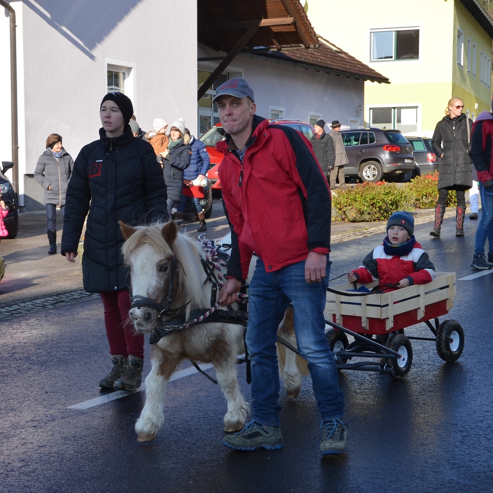 Der Festzug setzte sich aus Kreuzträger, Musikkapelle, den vier Freiwilligen Feuerwehren, Kameradschaftsbund, Jagdhornbläser, Lederhosenverein, Ministranten, Seelsorgeteam mit Pfarrgemeinderat, drei Gespanne mit dem Zelebranten, Bürgermeister, Ortsbauernobmann, etc., Gemeinderat, Ortsbauernausschuss und Reiter zusammen.