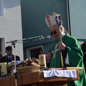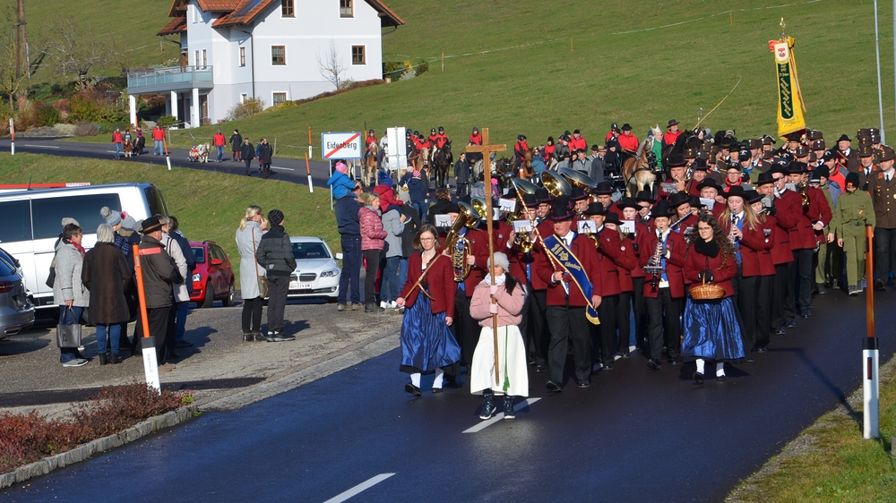 Ortsbauernobmann Gottfried Mair begrüßte den Zelebranten, den Komtur, die Ehrengäste und die Gottesdienstbesucher sowie die Reiter. Sein besonderer Grüß galt auch den zahlreichen Wallfahrern aus Oberbairing und Altenberg, die den Weg nach Eidenberg zum Teil zu Fuß auf sich genommen hatten. Die Leonhardiwallfahrt gab somit ein kräftiges Lebenszeichen von sich.