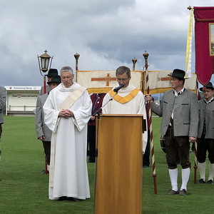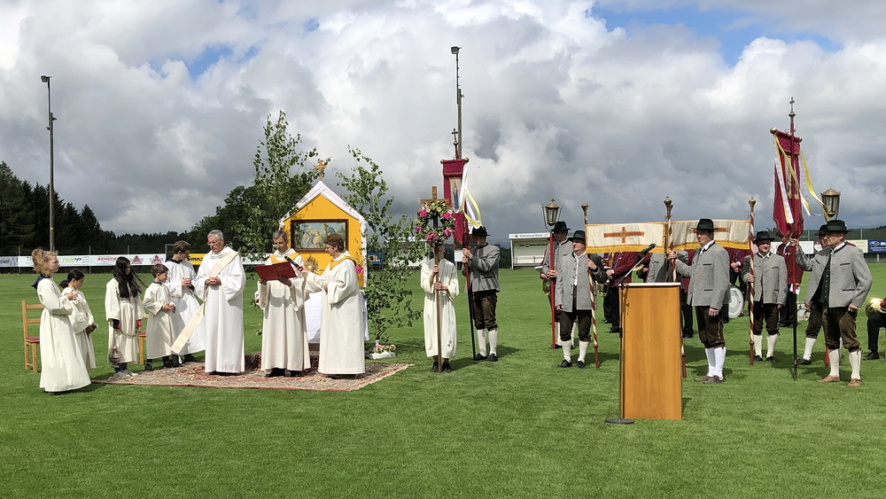 Musikalisch gestaltet wurde der Gottesdienst von der Musikkapelle und dem Kirchenchor. Nach der Wortgottesfeier wurde eine Station der Prozession gehalten, bevor nach dem feierlichen Schlusssegen der kleine Prozessionszug wieder zur Kirche zurückkehrte.
