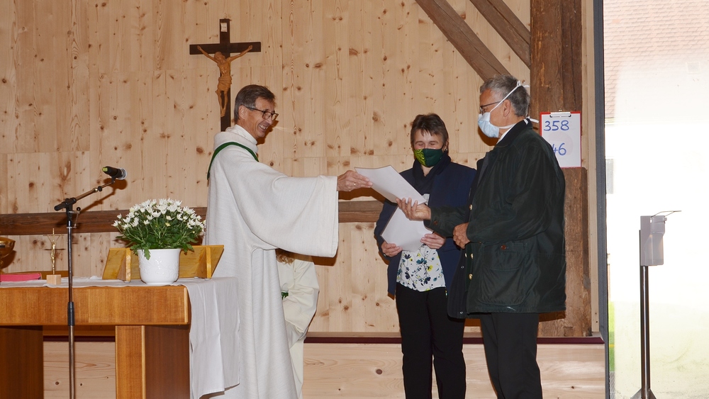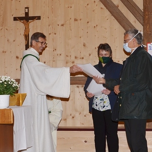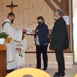 Wortgottesdienstleiter Ferdinand Aichinger überreichte ihnen nach der Predigt die Beauftragungsurkunde des Bischofs. Er bedankte sich beim ganzen Team der Kommunionhelfer für den ehrwürdigen Dienst, den sie bei der Liturgie ausüben.