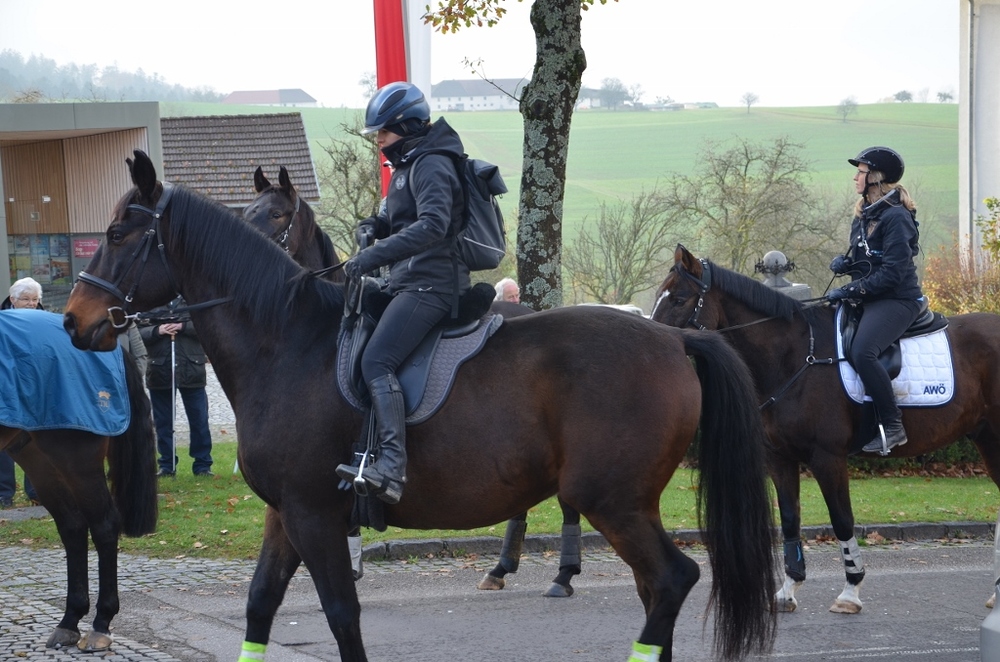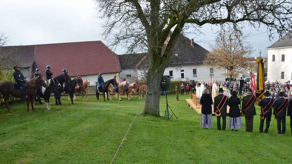 Nach der Kommunion segnete er die Pferde und Reiter. Von der Feuerwehrjugend wurde das frisch geweihte Brot an die Tiere ausgeteilt.