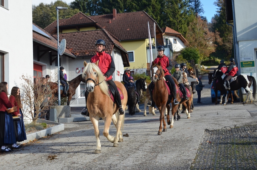 Thomas Schwierz freute sich sehr, den HH. Hochmeister zum Leonhardifest in Eidenberg begrüßen zu dürfen. Angeführt von den Ministranten und dem hochmeisterlichen Zeremoniär gingen sechs Confratres, darunter auch der österreichische Balleimeister aus Wien, im Kleinen Ornat vor der Kutsche des Hochmeisters her und nahmen Aufstellung zum Festzug auf der Eidenberg-Straße.