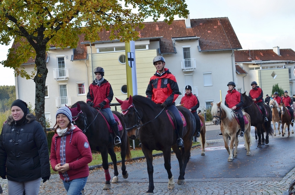 Der Festzug setzte sich aus Kreuzträger und Trägern der Prozessionsfahnen, gestellt vom Lederhosenverein, der Musikkapelle, dem Kameradschaftsbund, den vier Freiwilligen Feuerwehren, den Jagdhornbläsern, den Ministranten begleitet vom hochmeisterlichen Zeremoniär und den Familiaren des Deutschen Ordens, dem Kutschengespann mit dem Hochmeister und mit Diakon Hubert Mayr sowie der Ortbauernschaftsvertreterin Elisabeth Mair, dem Bürgermeister mit dem Gemeinderat, dem Ortsbauernausschuss und knapp 20 Reitern mit Pferden zusammen.