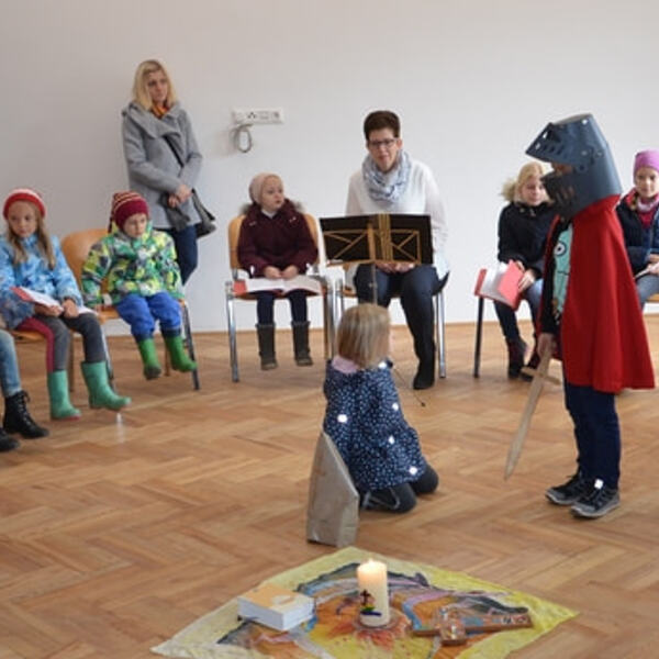 Zum großen Jubiläums-Leonhardiritt waren viele Kinder unter den Festbesuchern. Deshalb gestaltete das Kinderliturgieteam während des ersten Teiles der Messe einen eigenen Kindergottesdienst.