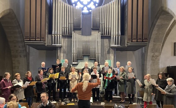 Am Pfingstsonntag gestaltete der Basilikachor den Gottesdienst mit lateinischen, deutschen und englischen Liedern. Darunter waren auch ein Kyrie von Antonio Lotti aus der Renaissance und das schon auf Fronleichnam verweisende Pange lingua. Die Feier stellte einen bravourösen Abschluss des ersten Chorjahres unter der neuen Leitung von Leona Siber dar.