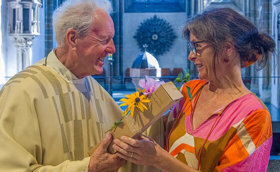 Zu Maria Himmelfahrt zelebrierte P. Severin Mayrhofer, der aus unserer Pfarre stammt und in unserer Basilika zum Priester geweiht wurde, anlässlich eines Heimatbesuchs den Festgottesdienst. Vor einem halben Jahr feierte er seinen 80. Geburtstag. Für den PGR gratulierte Ines Rinner in berührender Weise.