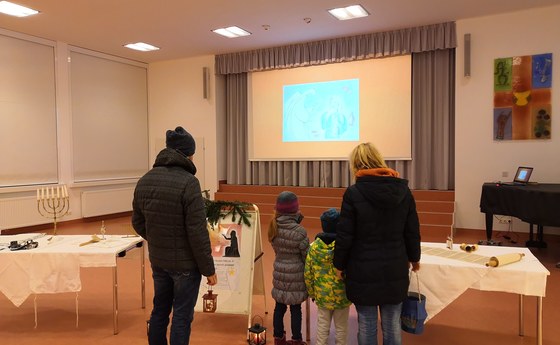 Am Nachmittag des 24. 12. führte ein Weihnachtsweg vom Pfarrheim über die Pfarrwiese und den Friedhof in die Basilika. 12 Stationen mit Bildern von Waltraud Kim erzählten darauf die Weihnachtsgeschichte. Auf den Hirtenfeldern fehlten auch die Schafe nicht und in der Kirche leuchtete das Friedenslicht aus Betlehem.